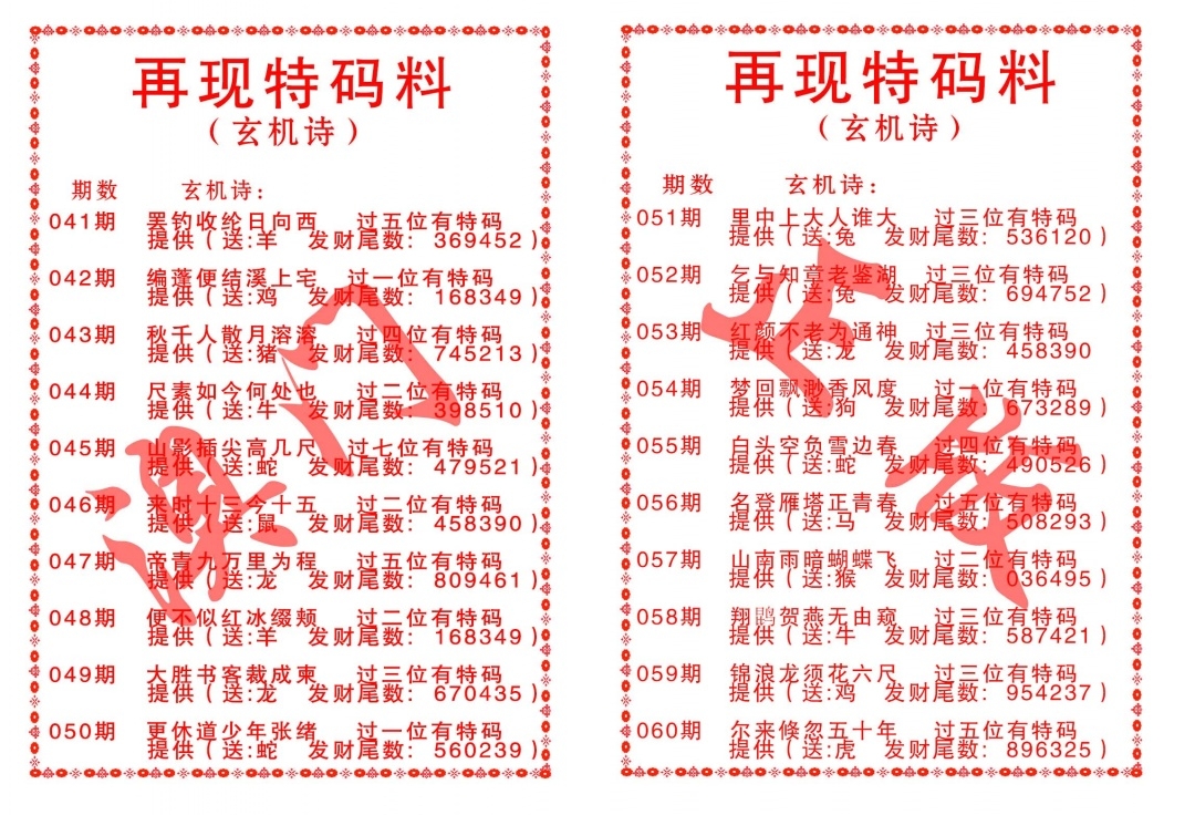 再现特码料